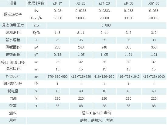 備注:ABW-20、ABW-30為搪瓷內(nèi)膽,溫水專用鍋爐