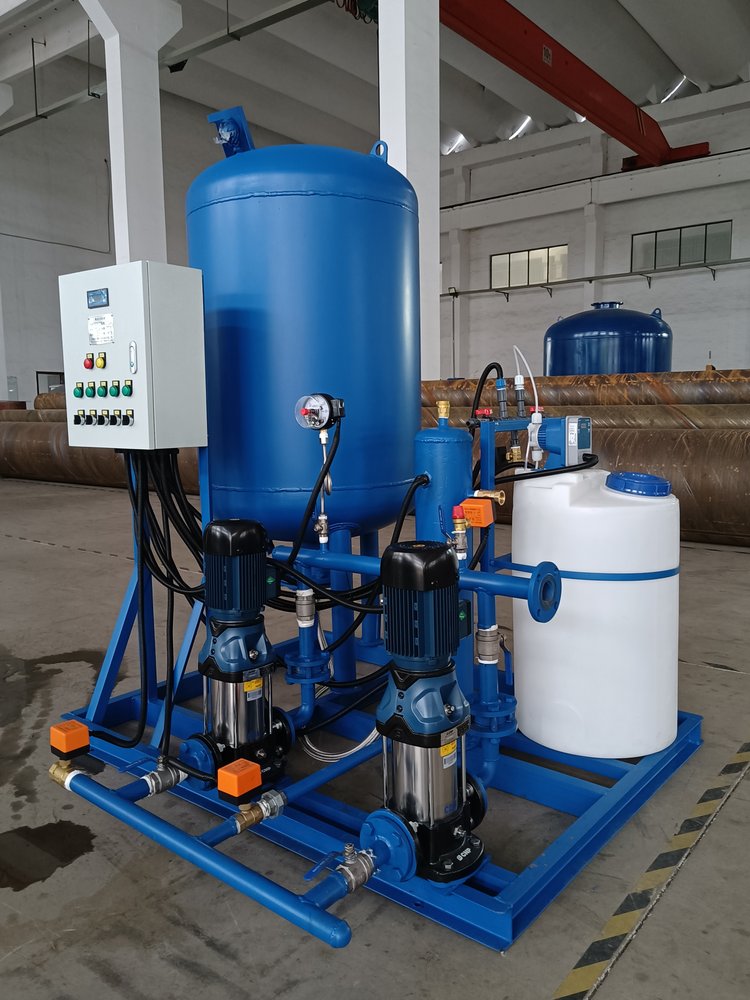 集成水保機(jī)組的工作原理主要包括定壓補(bǔ)水、真空脫氣、自動加藥、水質(zhì)監(jiān)測等方面。