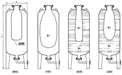 罐內(nèi)橡膠隔膜工作變化示意圖: