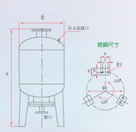 1. 隔膜式氣壓水罐可直接并聯(lián)在給水管路上,給水管道上應(yīng)安裝閥門,罐體底部須安裝排污閥。